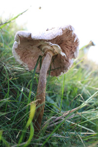 De parasol-zwam (Macrolepiota procera) is een van de grootste en meest opvallende paddenstoelen die je in de herfst tegenkomt. Hij kan wel tot 30 centimeter hoog worden, met een hoed zo groot als een ontbijtbord. Typisch zijn de lange, slanke steel met een beweegbare ring en het schubbige patroon op de hoed. Ze groeien vaak in graslanden en open duingebieden en staan bekend als eetbaar en smakelijk.